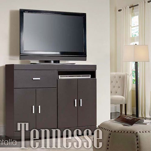 Mueble para tv con cajon y 4 puertas color chocolate.